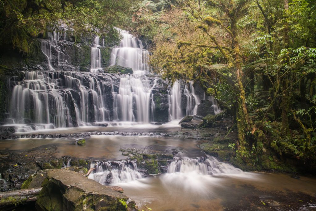 None of the Catlins’ falls are particularly high – so don’t expect to stumble upon the Niagara! But the dense and lush forest settings accentuate the splendour of cascading water. I visited the falls on a particularly wet day, which turbo charges the visual spectacle. 10km east of Maclennan, the walkway to the Purakanui Falls starts off Waikoata Valley Road. The track is a gentle 20 minute stroll, winding through a mix of silver beech and podocarp forest, climaxing with a sweeping view of the falls. Descend down the stream level viewing platform which provides a far more intimate spectacle of the three tiers of jet black rock that combine to make these falls so divine. My second favourite falls spectacle in the Catlins is McLean Falls, the region’s highest falls and just a 20 minute walk through enchanting rainforest.