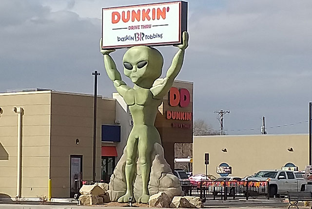 Delving deeper into Roswell, you’ll notice many businesses have adorned their frontages with lavish ET-themed murals, displays and statues. Dunkin’ Donuts has a fabulous super-sized alien underneath its roadside hoarding, while the Golden Arches have gone the whole hog. Roswell is home to the world’s only flying saucer-shaped McDonalds restaurant. Its aerodynamic qualities are seriously compromised by the need to enclose a Playland, but its distinctive saucer shape, metal skin and neon-lit embellishments are a trusty traffic-stopper. For more touring tips on exploring New Mexico, jump to the official tourism website, www.visittheusa.com.au