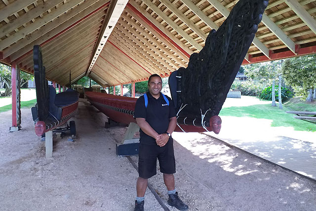 After returning to Paihia on the quick-hop ferry, I had a date with the nation’s birthplace. Blessed with a buckletload of sunshine at Waitangi, you’d be hard pressed to find a more photogenic coastal perch, than standing on that rolling velvety lawn of the Treaty Grounds. A sure-fire way to accentuate the experience is to take a private tour. My guide was Mukai Harua, a mountain of a man, who enriched my visit with a slew of authentic and personal insights.