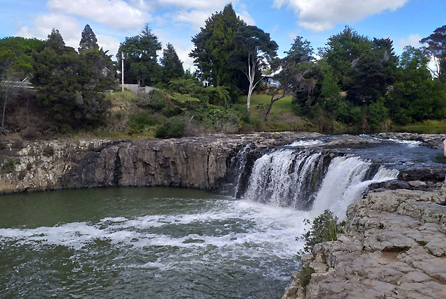 As the river widens, keep an eye out for shags nesting in the pohutukawa trees. You’ll hear the thundering roar of the falls before you see them. They cascade into a wide basin which was New Zealand’s first river port, an important transport junction in the early settler period.