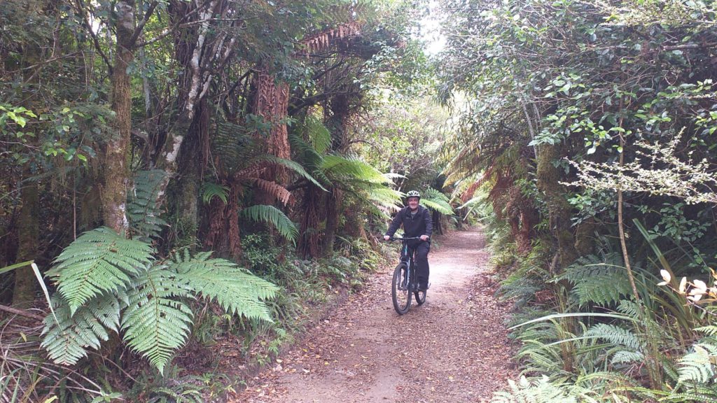 Information panels dotted alongside the trail vividly recall the logging era. The locomotives used on the tramway look like they’ve just walked out of a Thomas the Tank Engine book. Setting off from the railway station at National Park village, the trail heads south beside the main trunk railway line, then climbs up to meet the old bush tramway line. The tramway route serves up a soothingly verdant ride through the forest. Scattered along the way are various relics of the era including the remains of old log bridges, a small wood dam, pumice cuttings and rail irons. The tramway stopped operating here in 1957, left to disappear back into the landscape. community of National Park Village.