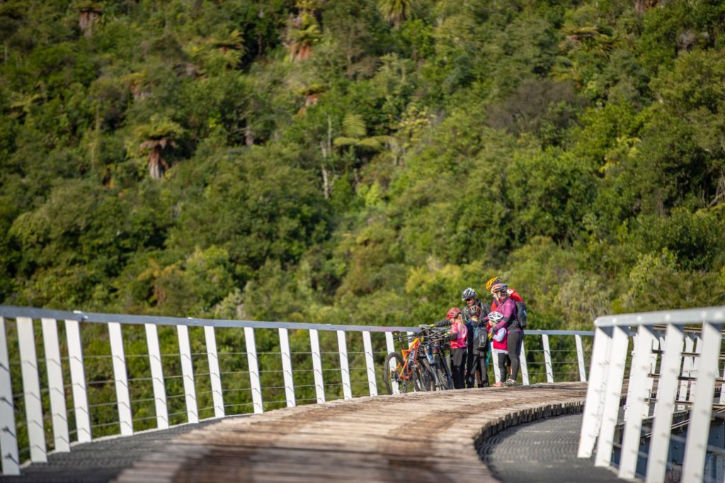 But it’s the Victorian engineering, spooky tunnels and two mammoth railway viaducts that are the runaway highlight. The fatally-rusted Taonui viaduct makes for a striking backdrop but the old Hapuwhenua Viaduct is good to go. You can cycle or walk across this colossal and curved structure, the longest viaduct in the Southern Hemisphere at 284 metres long, and 45 metres above the river. I dare you to look down between the sleepers! It was restored as part of the Cycle Trail development, while the newer Hapuwhenua Viaduct does a brisk trade for KiwiRail. There’s a bucketload of history to lap up, imparted by the information panels, sprinkled along the route.