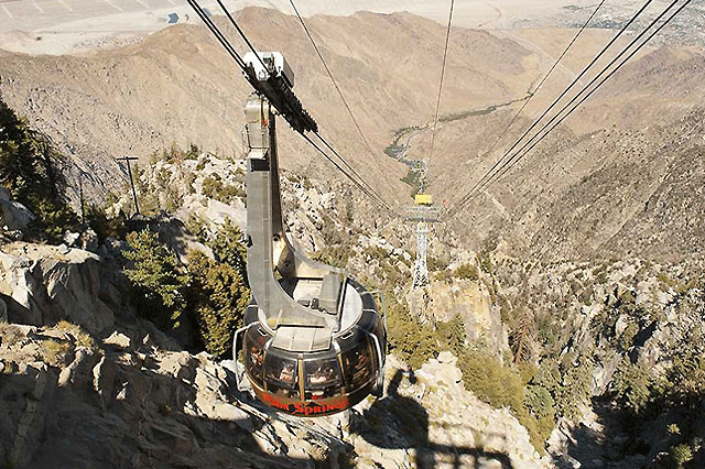 The best way to get a sense of the wildly contrasting terrain is to jump on-board the Aerial Tramway, allegedly the world’s largest rotating cable car, for the ride up Mount San Jacinto, through the craggy Chino Canyon. Ascending 6000 feet miles in ten minutes, through five distinct vegetation zones, the 2.5 mile climb represents the average temperature change if you drove from British Colombia to Mexico City.