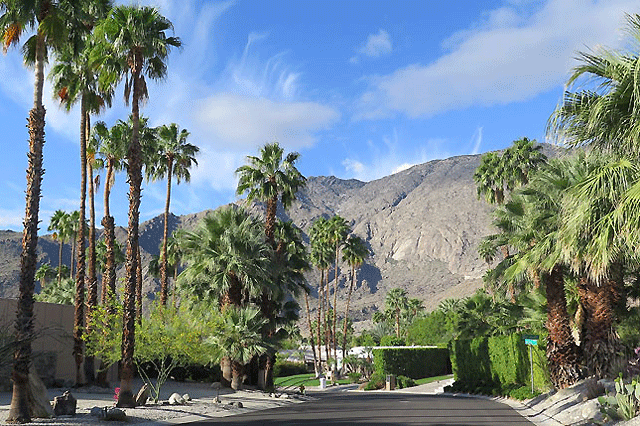 The valley is surrounded by mountain ranges on three sides and Palm Springs is dramatically backdropped by the lofty peaks of the San Jacinto and Santa Rosa Mountains, towering above the city. As you enter the valley on Highway 10, the elevation is 2600 feet, fast falling to 400 feet in Palm Springs, and further south near the Salton Sea, you’re actually below sea level at -227 feet.