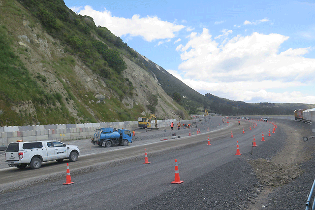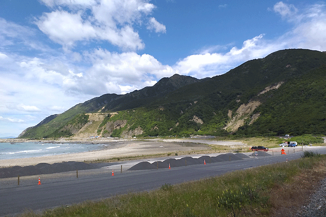 The ongoing road work between Oaro and Clarence is a compelling sight, particularly around Ohau Point– where mountains have been “moved” to resurrect the highway.