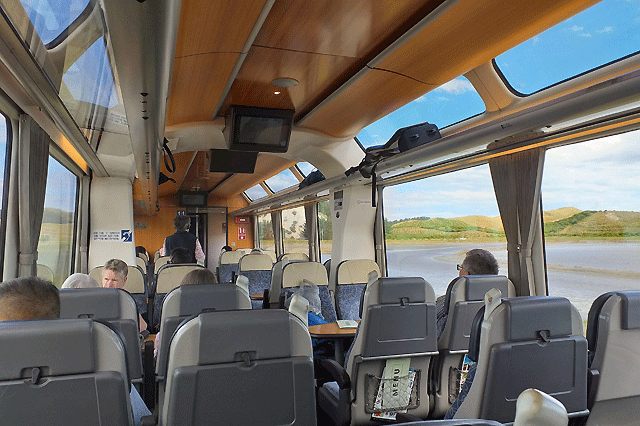Cocooned in the comfort of my brightly patterned, climate-controlled carriage with panoramic windows, I plugged in the headphones and thoroughly enjoyed the on-demand audio commentary, narrated by Raylene Ramsay. Her nuggets of knowledge about passing points of interest ran the gamut from the grand and historic to the quirky bites of trivia beloved by trainspotters. For example, I learnt that Canterbury’s braided rivers are very distinctive. The only other places in the world where braided rivers can be found are Alaska and the Himalayas. Parnassus was named after the Greek mountain that was the mythological home of Apollo. A local landowner thought the mountain behind Parnassus was similarly shaped to its Greek namesake.
