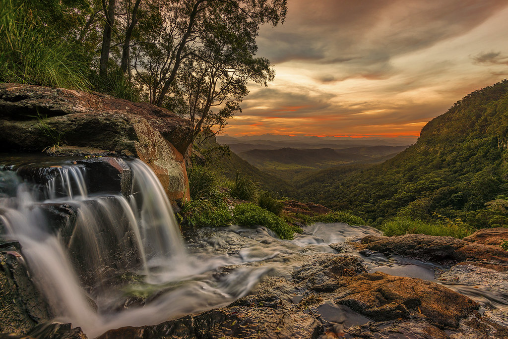 In 1987, the family opened Australia’s first tree top walk, 180m long and 15 metres above the rainforest floor, to provide visitors with a bird’s eye view of the rainforest. The walk is made up of nine suspension bridges. It was a thrill to take a ramble on this suspended trail – the trail-blazer for many subsequent operations across Australasia. Laced in a wealth of stunning trails, another personal favourite is Morans Falls track. It descends 140 metres through a sub-tropical rainforest of booyongs, strangler figs and brush box to Morans Falls Lookout. I adore Booyong trees, one of the largest buttressed trees in the rainforest. The lookout was the site of a bark hut, the first home of the O’Reilly brothers when they arrived on the mountain.