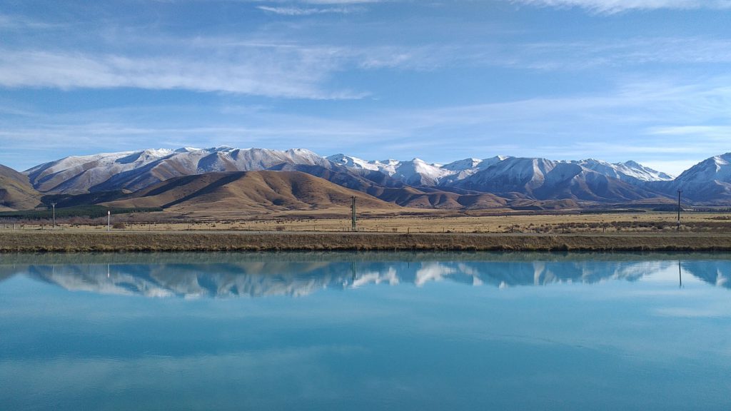 Water running underneath a bigger body of water! Adjacent to Ben Ohau Station, the undulating expanse of Ruataniwha Conservation Park serves up a spree of scenic walking options, including the cinematic grandeur of “Pelennor Field“ as seen in Lord of the Rings, and shot on Ben Ohau Station, at the foot of the mountain range. Ben Ohau Range’s reflected glory in the glossy canals behind Twizel is particularly sensational – I snapped away like a mad thing.