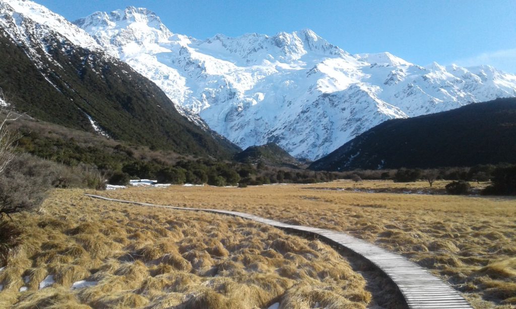 I also love the Kea Point Track, which starts from The Hermitage, and can be easily knocked off within 2 hours. It’s also a relatively flat walk, emblazoned in golden tussock and subalpine grasslands, leading you to the Mueller Glacier moraine wall. The walk culminates with a close-up panorama of Mt. Sefton, The Footstool, Aoraki and the Mueller Glacier lake. As I experienced, the monastic silence is only pierced by the thunderous booms of calving ice, breaking away from the glacier at its terminal.