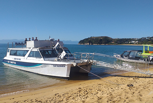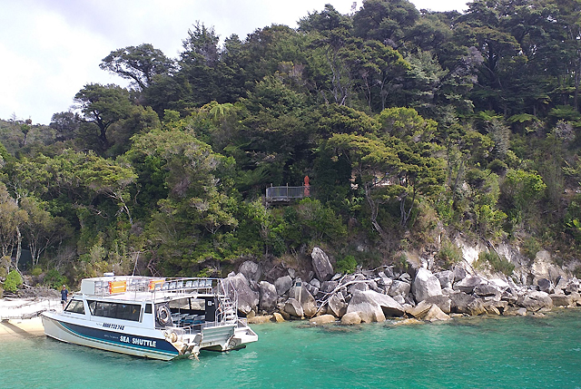 This trusty transportation and scenic cruise company has been plying the waters for over 20 years, with Keith and Heather Knapp at the helm. During that time, Keith has built 17 vessels for the business, along with ramps to get passengers on and off the vessels with dry feet and propellers that tilt to allow the vessels to operate in very shallow water without disturbing the sea floor. An abiding family affair, grandson Jackson is now the third generation skipper in the Knapp clan. I was cruising to the legendary Awaroa Lodge for a pampered night in the wilderness. Closed over the cooler months, the lodge reopens on September 30 for the spring and summer season.