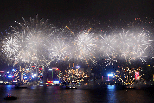 Fireworks above Victoria Harbour and the International Chinese New Year Night Parade