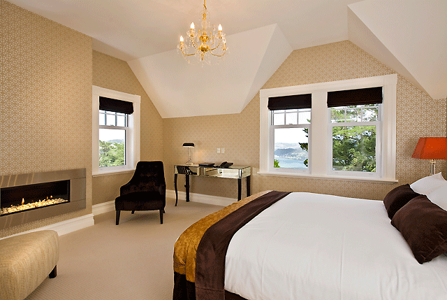 Located just 500 metres from the Larnach Castle gate, you’ll feel like Lord of the Manor at Camp Estate, a stately Country House, which is sited on Castle land. Luxuriously decorated, the five generously-sized bedrooms finished in neo-classic style, with in-room gas fires and comforts galore. For all of the exclusivity, nothing beats waking up to those sprawling hill-top views across the Otago Peninsula and the deep blue harbour.
