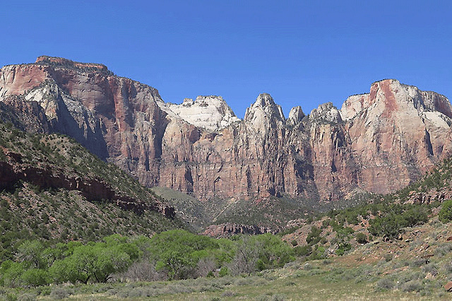The main heart-piercing artery running through the park, Zion Canyon Scenic Drive, is off-limits to private vehicles between April and November, from Canyon Junction. Park officials wisely imposed the ban to combat the absurdity of having such a majestic piece of protected wilderness log-jammed with fume-spewing lines of cars. So instead, complimentary shuttle buses zip the throngs of visitors to all of the major trailheads and points of interest, with nine designated stops along the six mile road.