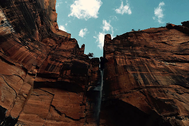 Surrounding Weeping Rock, you’ll delight in the hanging gardens sprouting from the thin cracks and crevices of the seeping walls. Weeping Rock’s charm regularly draws hikers to sit beneath the sprinkling cascade for hours, in quiet contemplation. If you’re open to something more strenuous, Angel’s Landing is the famous, thrilling and deadly trail up to the summit of this towering fang of rock.