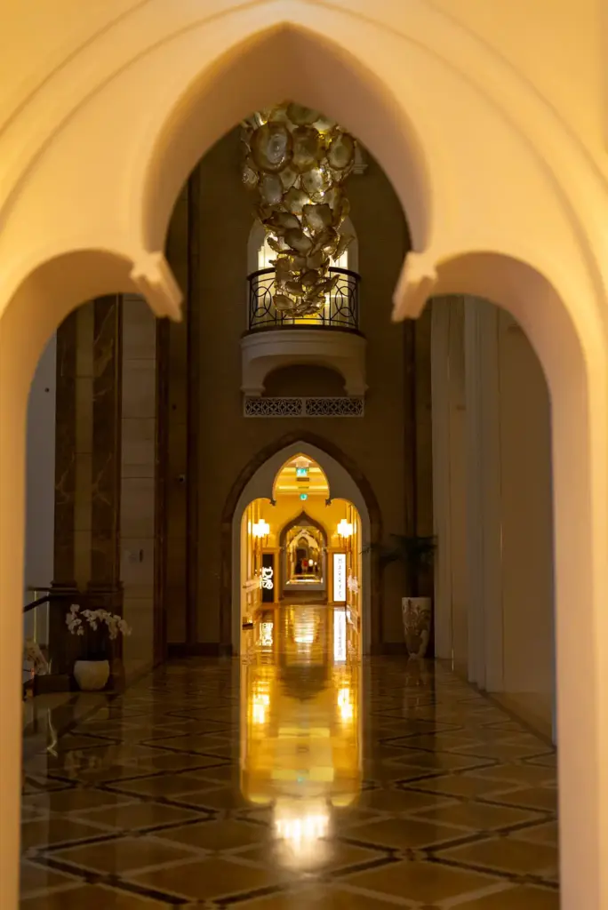 Carefully curated art pieces command attention without overwhelming, while monumental pillars and softly illuminated Arabian arches create architectural drama. This is a space designed to inspire wonder, where every element has been orchestrated to evoke the romance of palatial living.