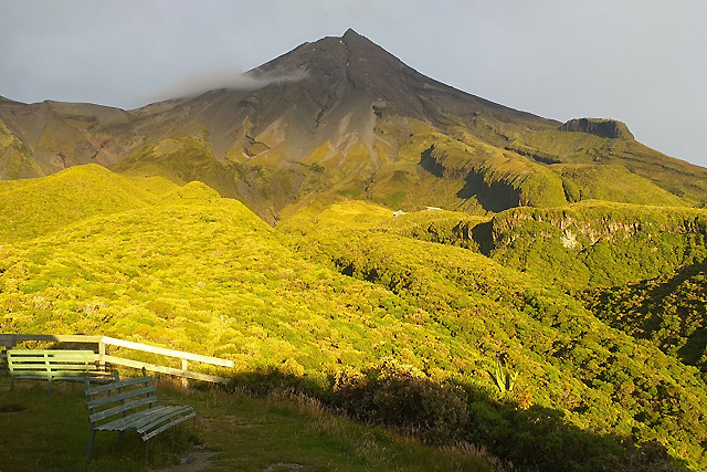 From the Ngāti Ruanui Stratford Mountain House, the road winds its way for 3km before ending at The Plateau car park, a glorified balcony perch across the compelling countryside. At an elevation 1172m above sea level, I ventured there at the crack of dawn to enjoy the first kiss of sunlight, gilding the maunga’s peak. If you’re up for a leg-stretcher, the Manganui Gorge and Patea tracks are both very manageable walks on the eastern slopes. Further afield, Dawson Falls and the Goblin Forest are family-favourites.