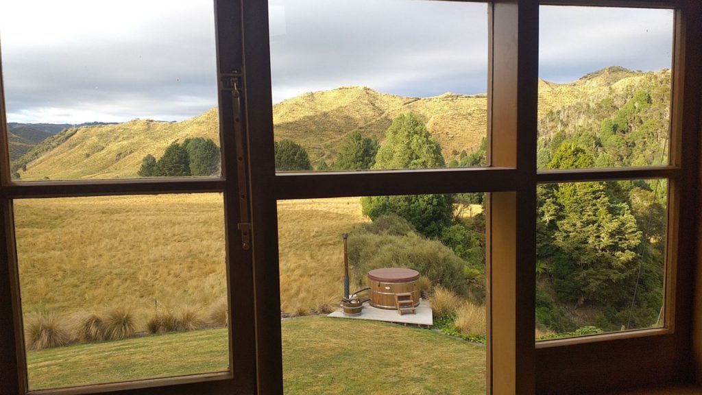 It’s the horizon-wide views that just kept reducing me to audible sighs. The artfully designed lodge was built for owners Warren and Jen in 2000, crafted from honey-hued mudstone blocks shipped from Nelson.