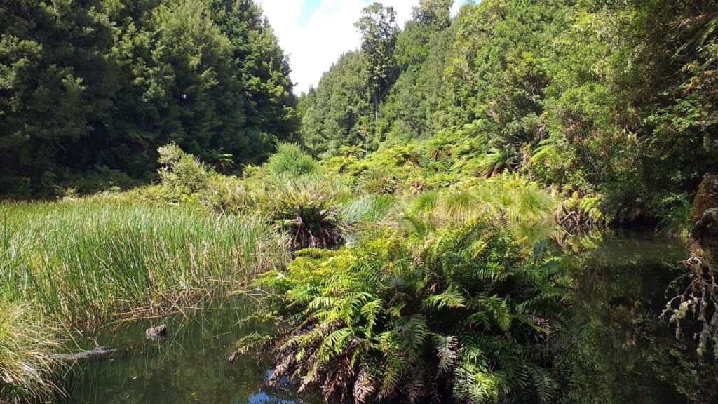 After admiring the salivating views of the river and Tongariro Forest from the bridge, we set off on the full 3.8km loop track around the reserve, serving up attractive scenery, a boardwalk crossing of soothing Ohinetonga Lagoon and through the stunningly beautiful forest.