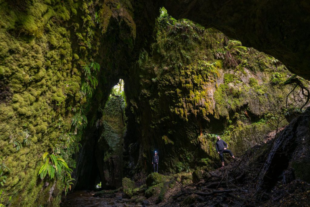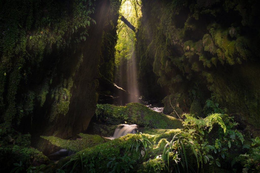 Freshly refuelled, I took a 20 minute drive north east of Āpiti, to reach the entrance of Limestone Creek Reserve and their stunning glow worm caves. These special and unique caves are on private land and protected by QE11 National Trust. The rock formation and colours within the caves are sublime with lush moss, fern and lichen festooning the cave walls in a blaze of green hues. Then there are the golden and silver colours of the walls tinged in places with lilac. A tinkling stream courses through these almost triangle-shaped caves with water constantly dripping through from the top. Don’t forget your raincoat!