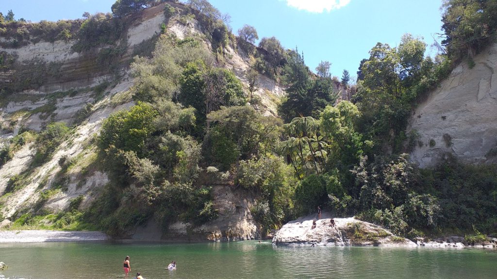 South of Mangaweka, I returned to Feilding on the Stormy Point route, which takes its name from the Stormy Point lookout, where the views are phenomenal, reaching as far as Mt. Taranaki and Mt. Ruapehu, and the West Coast. You’ll also see one of the best-preserved sequences of river terraces in the world, on this touring route. Be sure to pop into Vinegar Hill Domain, a sublime riverside picnic and camping spot, where you can take a cooling dip in the crystal-clear waters of the Rangitikei, wrapped in those signature sheer vertical papa (clay) cliffs. Those incredible cliffs look like putty, moulded by the invisible fingers of Father Time.