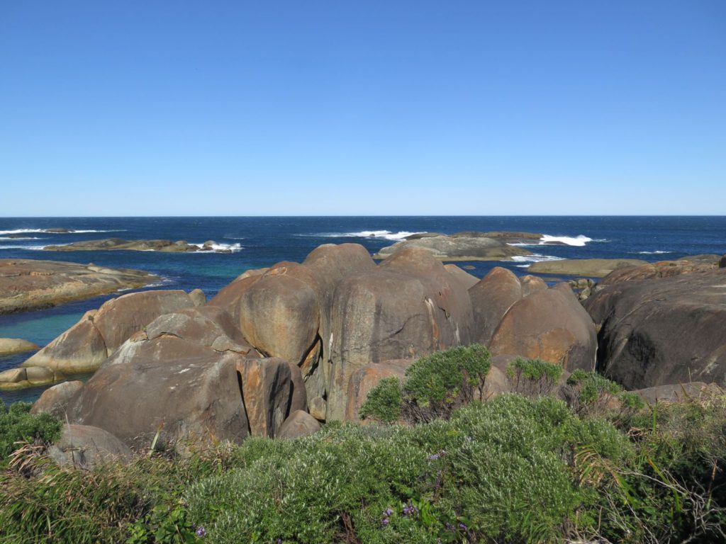 The wide expanse of the coastal perspective is arresting, as you cast your eye from Bald Head to West Cape Howe. Shuffling into view was the stately sight of the bridge, a monumental span of granite, with a wide opening for the pounding surf to rush in. With a reasonably heavy swell running, the awesome theatrics of ocean power was in full cry. Then there’s the Blowholes, a crack line in the granite, ‘blowing’ air and occasionally spray, like a giant whale. The acoustical booms rumbled across coastline.