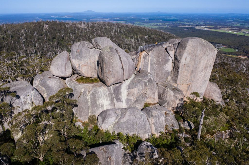 Tracking back to Perth, an essential stop is Porongurup Range National Park. The starring attraction is the Castle Rock Granite Skywalk, which is a 3km return walk. The gigantic ancient granite domes of Porongurup National Park rise 670 metres, giving exhilarating views of the landscape, especially from the Granite Skywalk suspended from Castle Rock. This is a suspended walkway that spirals around the huge granite outcrop of Castle Rock to the summit. With two lookouts at the summit, unleash your spirit for adventure and head to the upper lookout. Perched over the side of Castle Rock, you’ll scramble over and under a few rocks and climbing a 6 metre ladder to reach the sky-high loft. It’s exhilarating, with the sweet reward of seraphic views.