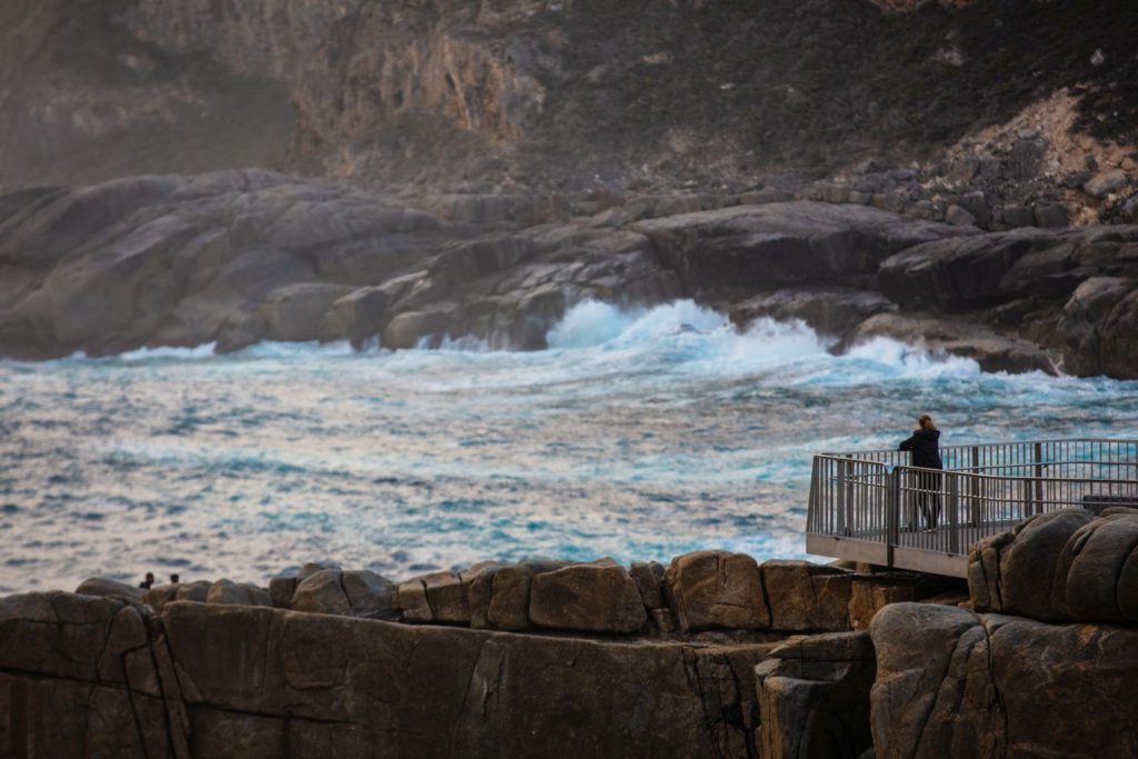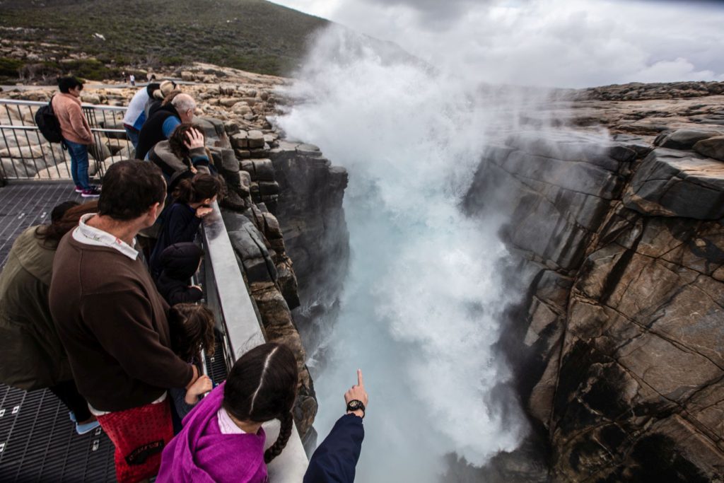 We scooted around the sun-kissed shoreline of King George Sound to Torndirrup National Park, where an unmissable assignment is to experience The Gap, a gaping chasm between two towering granite shelves, where the ocean water surges in. A daring cantilevered viewing platform has been constructed, jutting well past the cliff edge and is buffeted by the salty, briny ocean spray. I mustered up the requisite courage as the wind whipped around me, succumbing to the elements, to stand directly above the pounding sea rushing into the chasm, 40 metres below me. Gazing down was like staring into a deadly watery abyss. This intimate encounter with the savage power of mother nature is quite the freak-out frisson to start your day. After revelling in that undeniably edgy sensation, we followed the adjoining signposts on the pathway out to the Natural Bridge.