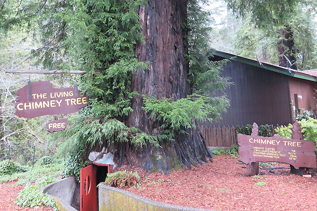 Well, America certainly knows how to lay on the quirk and another such spectacle is the Shrine Drive-Thru Tree, at Myers Flat. It’s got a naturally cleaved tunnel through the base of the trunk, becoming one of California’s one of earliest tourist marketing icons when it was touted to the world 90 years ago. And still they come, to drive their car through the tree. Another quirky specimen is an intrepid redwood that refuses to die. Dubbed the Immortal Tree, it continues to grow despite being scorched by lightning strikes and fires on countless occasions.
