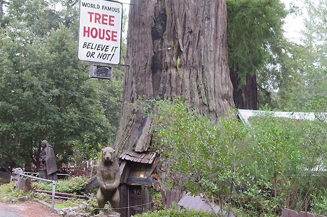 Follow the signs to the famous One Log House. As the name suggests, it was hollowed out in 1946 from a single log, from a redwood tree over 2100 years old! It took two men eight months of hard labour to build this five-bedroom log house. You’ll find it just south of Garberville, one of numerous quirky roadside attractions all along the Redwoods Highway.
