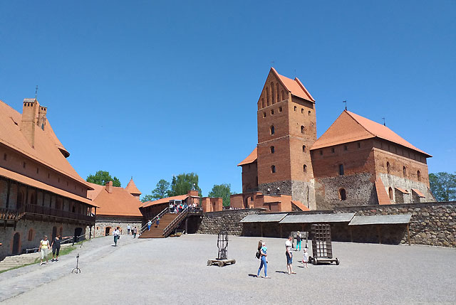 Stone foundations are topped with red brick towers in the French Gothic style and wooden balconies encircle every floor of the soaring palace. Attacked and besieged over the centuries, the Grand Duke decamped from Trakai when Lithuania joined Poland in the Commonwealth, in 1569. After WWII a major reconstruction project was commissioned, returning the castle to its rustic grandeur of the 15th century.