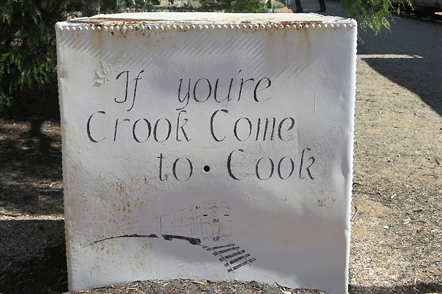 The wild hop seeds were used by the Afghan camel drivers to pad out their saddle-bags, yet they inadvertently added splashes of colour to the landscape, far and wide, as the seeds shed from the padding of their bags. We pulled into Cook, which was previously a service town for the Trans-Continental Railway. Just four people remaining living in Cook, servicing the trains with water and diesel, as they pass each day.