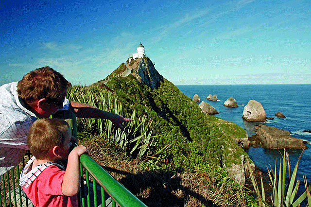 The walkway climaxes at the 158 year old lighthouse, pinned to the jagged summit, and towering over New Zealand’s most dynamic marine mammal zone. Adjacent to Nugget Point, blue and yellow-eyed penguins can be viewed late in the day, at Roaring Bay.
