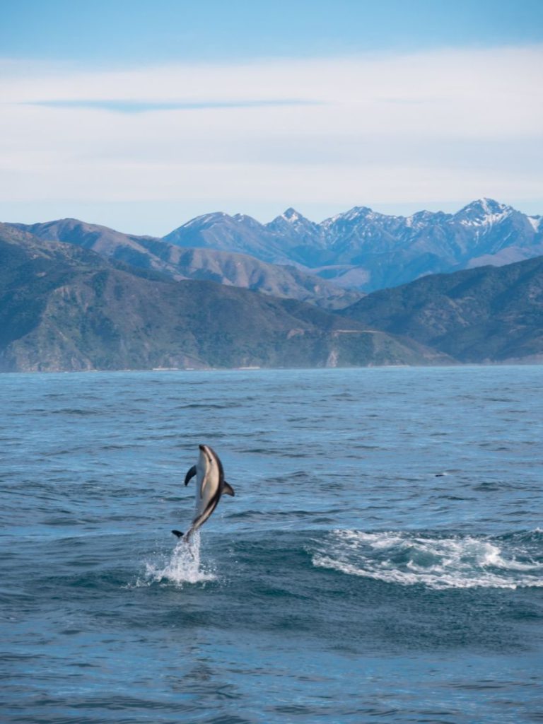 That mountain backdrop of the Seaward Kaikōura  Range is deliriously good, a match for the Remarkables Range that curtains Queenstown. Few places in the world have such mighty mountains so close to the sea. And what really underscores the extreme drama that nature has wrought, is the fact that just offshore the Kaikōura Canyon plunges to a depth of twelve hundred metres. It’s those deep sea trenches of the Continental Shelf that give rise to the world-beating marine wildlife experiences you can encounter.